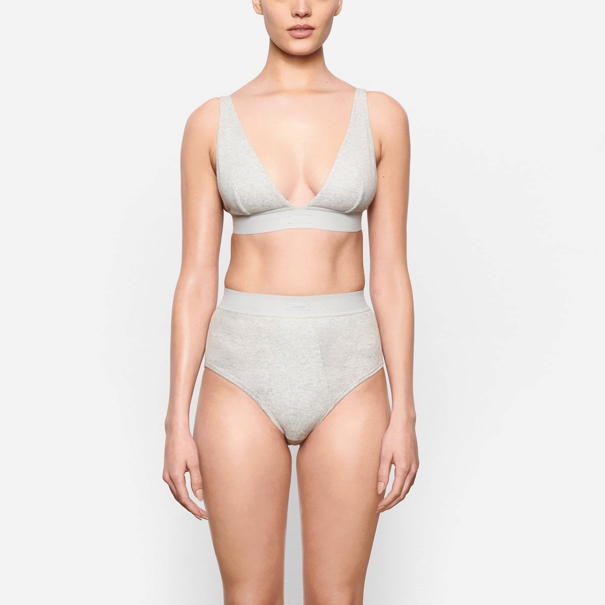 :: SKIMS Bavlnene Plunge Bralette Svetlo Siva | IS2908754