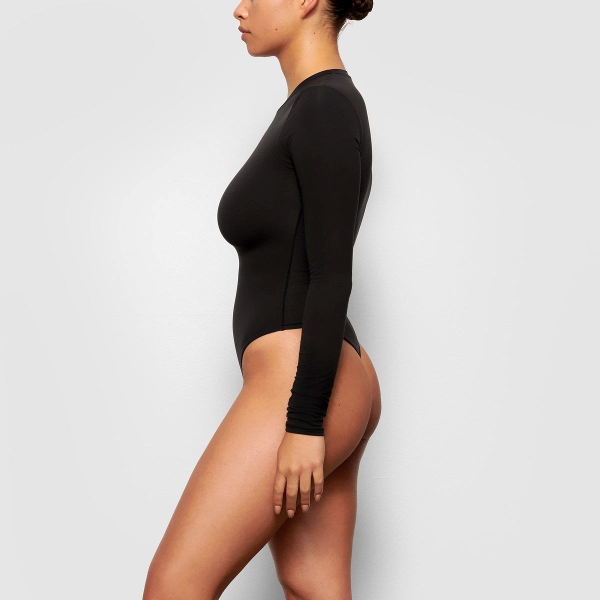 SKIMS Fits Everybody Long Sleeve Crew Neck Bodysuit Onyx - SKIMS SK