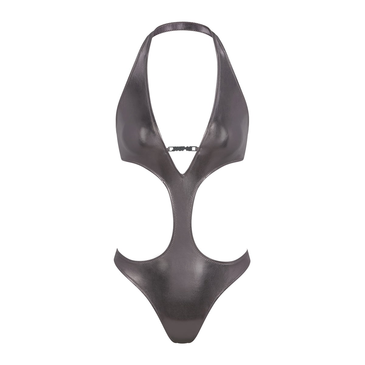 SKIMS Metallic Swim Halter Monokini Carbon - SKIMS SK