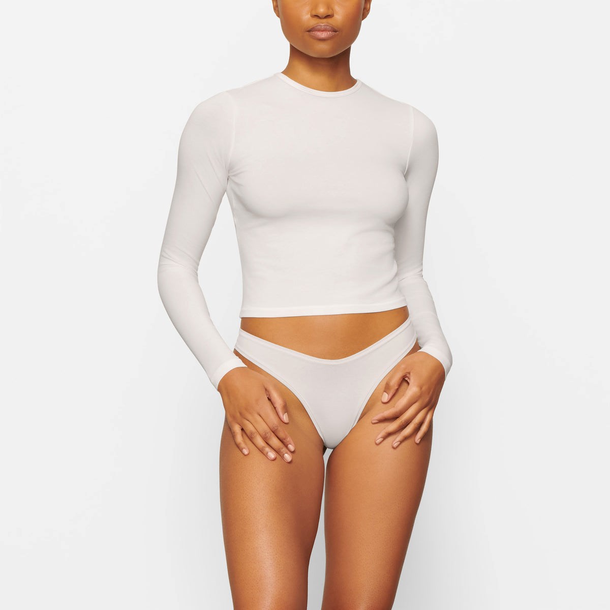 sherica is size 2 and 5' 9", wearing a skims s