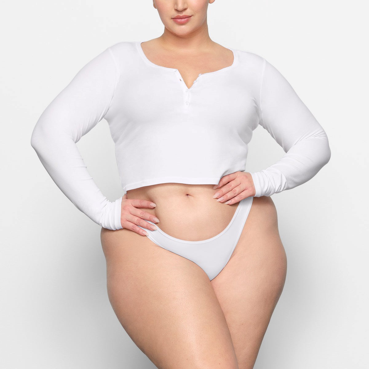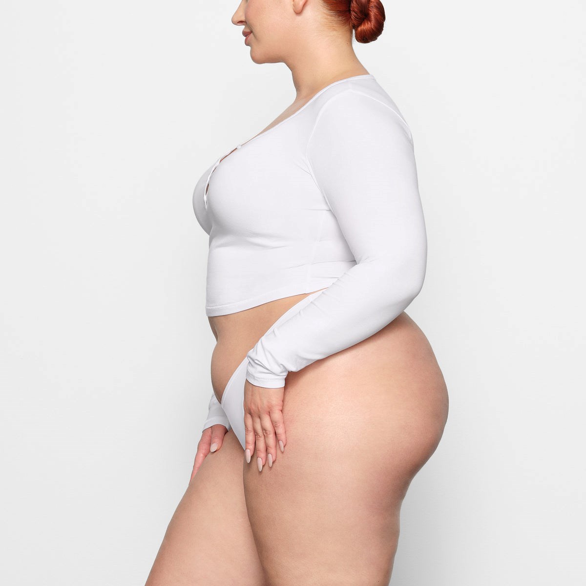 SKIMS New Vintage Long Sleeve Cropped Henley Snow - SKIMS SK