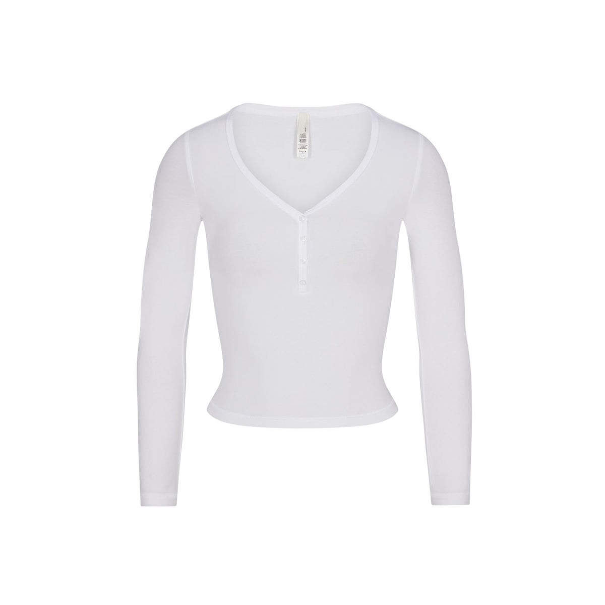 SKIMS New Vintage Long Sleeve Cropped Henley Snow | VI0327946