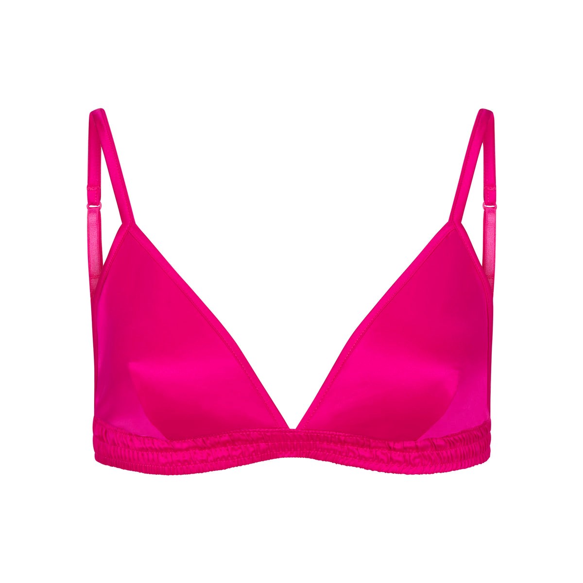 This triangle bralette has a flattering fit with an ultra-silky sleek finish. Features thin partial adjustable straps, stretchy elastic gathered underband, and hook " />